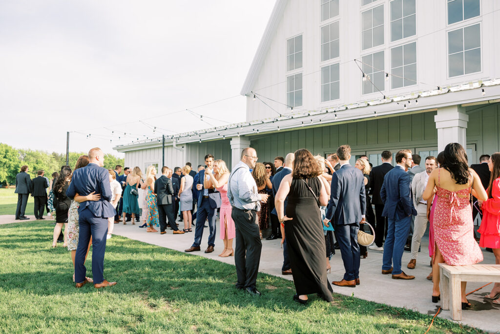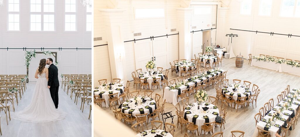 At the heart of the venue, the Grand Hall is our primary space for indoor ceremonies and receptions. This expansive room features dramatic sliding barn doors that open to both the East and West Wings and a glass accordion wall that flows out to a spacious covered patio. With high ceilings, elegant finishes, and a 49-foot indoor aisle walk, it’s a breathtaking place to say “I do.” During cocktail hour, our team seamlessly flips the room into a reception-ready space.